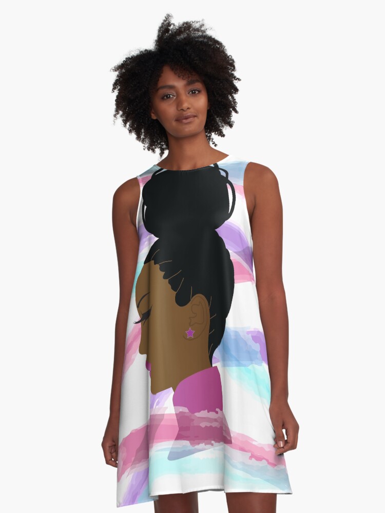 Black Girl Braided Bun Hairstyle A Line Dress By Blackartmatters