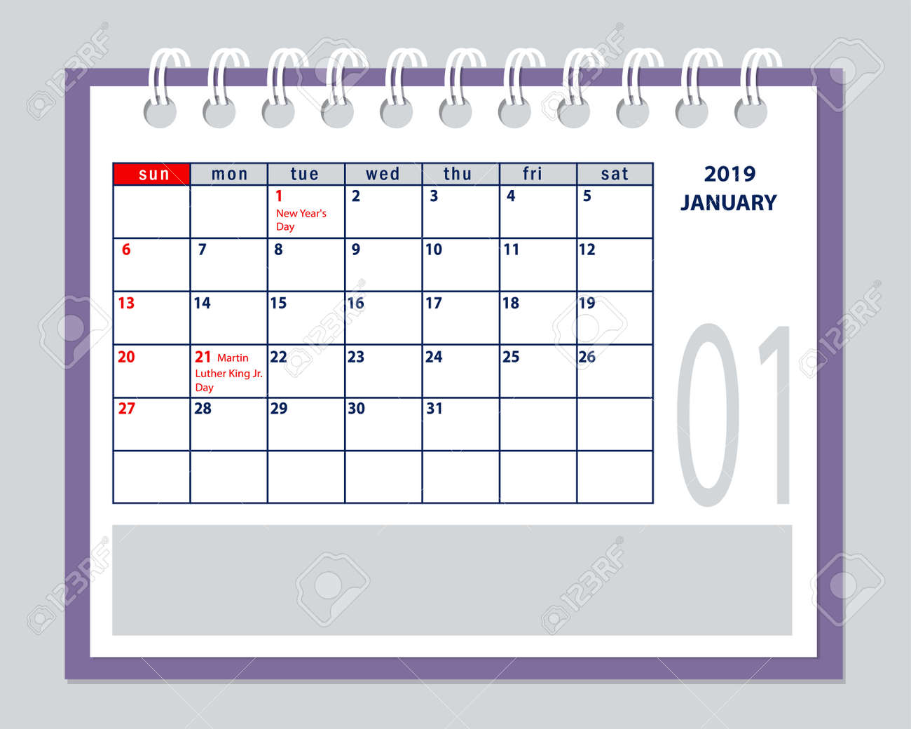 January Page Year 2019 Of American Calendar With Federal Holidays